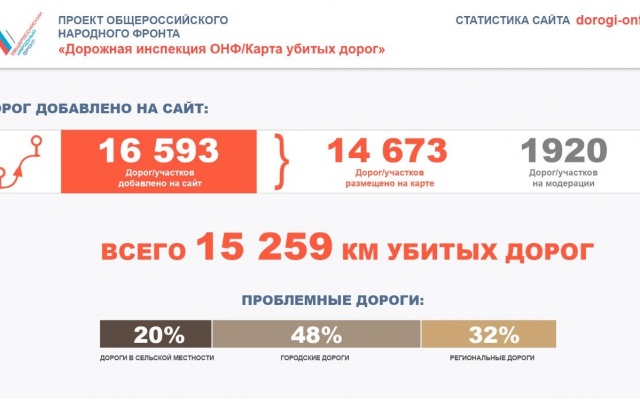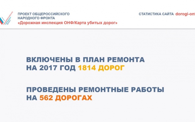А по итогам работы проекта dorogi-onf.ru  за три месяца, было отмечено более 15 тысяч км "убитых" дорог. 1814 дорог, отмеченных на интерактивной карте ОНФ, уже включены в план ремонта на 2017 год, а 562 дороги уже отремонтированы.