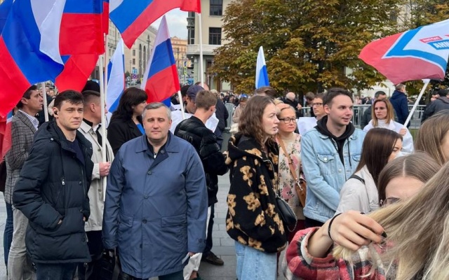Тысячи людей собрались, чтобы поддержать вхождение ДНР, ЛНР и освобожденных территорий в состав Российской Федерации.