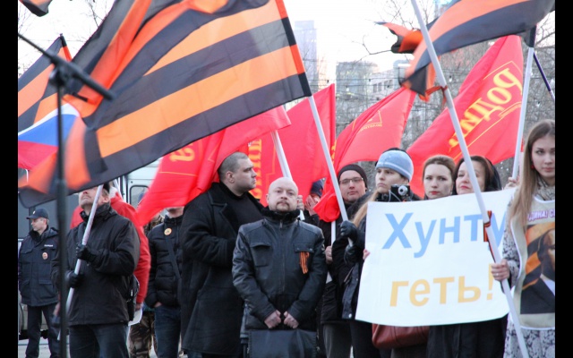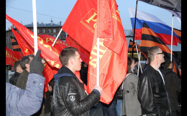 12 марта в 19.00 в Москве на площади "Краснопресненская застава" у памятника "Героям Революции 1905 года" прошёл митинг патриотических сил в поддержку "русской весны" на Украине. Акция была заявлена "Евразийским союзом молодёжи".