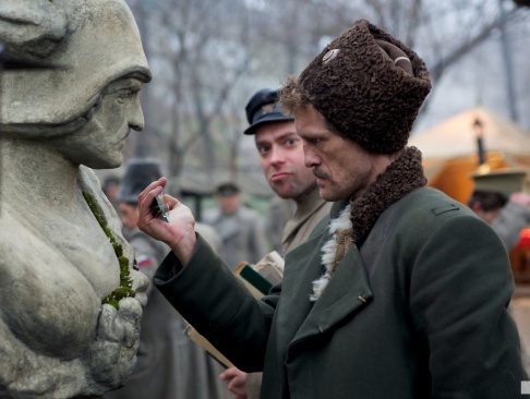 "Как всё это случилось?" - в полубреду вновь и вновь задаётся вопросом русский офицер. И его собраться по оружию и по несчастью - о том же. "Зачем мы по-французски учились, зачем была вся великая русская литература? Зачем это всё теперь?" - не понимает лихой казак с переломанным носом и крутыми усами. "Умеем ли мы, русские, делать что-то своими руками?" - продолжает другой офицер. И фотографию бы на память сейчас.... Но растерянные размышления кадровых военных прерываются жёстким окриком революционерки Розалии Землячки (Залкинд). "Вам не стыдно?!" - сечёт воздух дама в очках и хрустящей кожанке. И пристыженные офицеры покорно разбредаются по сторонам... А главный герой спасается за кулисами памяти, где он снова на пароходе плывёт по прекрасной русской реке в окружении радостных беззаботных людей. И вновь, позабыв обо всём на свете, он бежит за голубой шалью незнакомки, бежит навстречу солнечному удару. "Как всё это случилось?"... Откуда всё это - гражданская война, смерть, трупы, вши, колючая проволока. И "добрый" молодой комиссар, который давно, мальчишкой, узнал про теорию Дарвина и на денёк стал похмельному офицеру приятелем в незнакомом провинциальном городке. Как всё это, зачем, почему?..