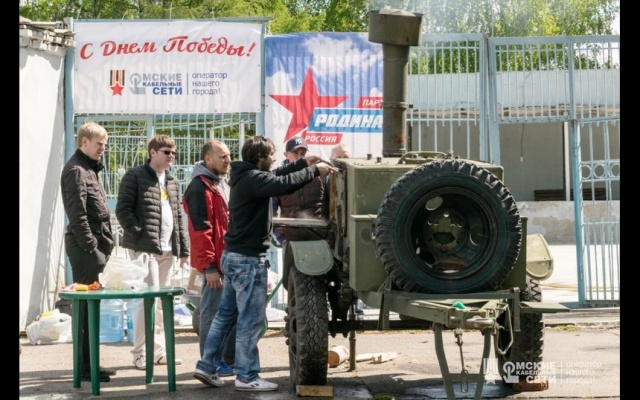 В День Победы активисты "РОДИНЫ" вместе с ООО "Омские кабельные сети" развернули полевую кухню в нескольких парках города Омска.