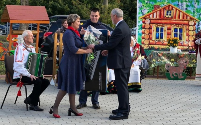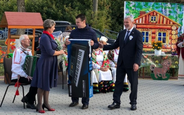 Алексей Журавлев выступил с небольшой речью, поздравил жителей села, после преподнес в дар Центру досуга и информации Листопадовского сельского поселения синтезатор и микшерный пульт. Также вручил благодарственные письма местным творческим коллективам: взрослому "Поляночка" (руководитель - Черепов Владимир Иванович) и детскому "Ладушки" (руководитель - Высоцкая Мальвина Михайловна).