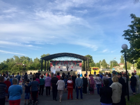 В парке Победы собрались жители г. Поворино и близлежащих к городу сельских поселений. Для зрителей с сольным концертом выступил воронежский певец Яков Самодуров. Он исполнил современные и добрые песни о Родине, любви и воронежской земле.