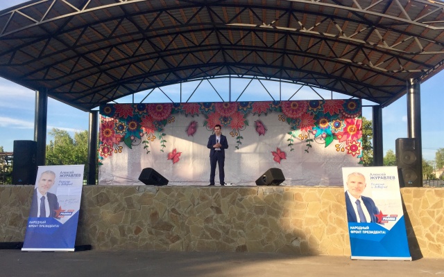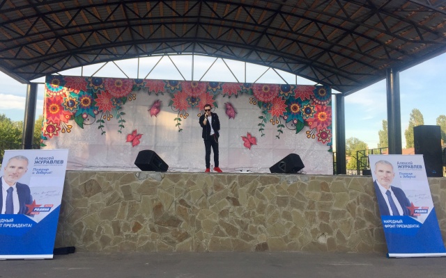 Со сцены в адрес всех присутствующих с теплыми словами обратился помощник депутата Госдумы Алексея Журавлева Иван Каменев: "Мы все разные, но мы едины в главном – Россия наша общая Родина", - сказал Каменев. "Я уверен, что наш исполнитель сегодня сможет поднять вам настроение. От лица депутата Алексея Журавлева поздравляю Вас с праздником – с Днем России!", - продолжил он.