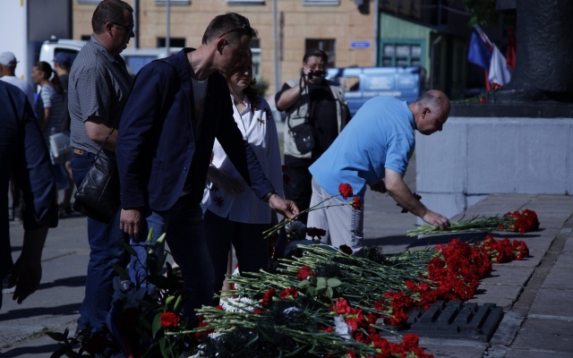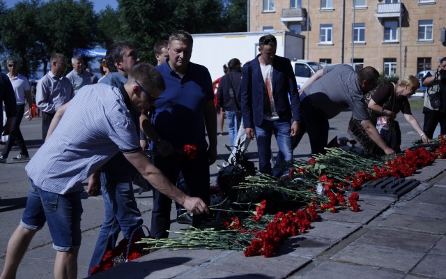 Архангельские партийцы возложили цветы к Вечному огню в День ВМФ