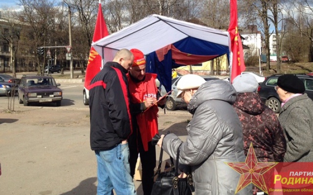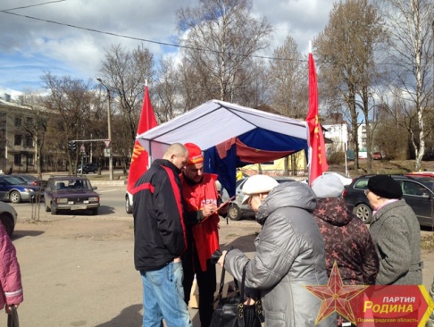 Хотелось бы отметить и поблагодарить депутата Совета депутатов города Выборг Выборгского района Ленинградской области, члена партии "РОДИНА" Александра Ларичева; члена партии Глеба Перевалова, а так же активных сторонников партии Тимура Бегматова и Михаила Ван Ортон, которые, несмотря на штормовое предупреждение и дождь, с честью выполнили задачу по организации и проведению акции.