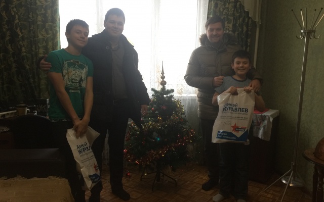 Артем Чекмарев, Иван Каменев и Полина Сысоева встретились с ребятами, вручили каждому сладкие подарки и поздравили с наступающими праздниками от депутата Алексея Журавлева.