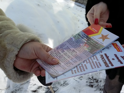 Всем пришедшим на митинг партийцы раздавали буклеты с календарем памятных и знаменательных дат Великой Отечественной войны.