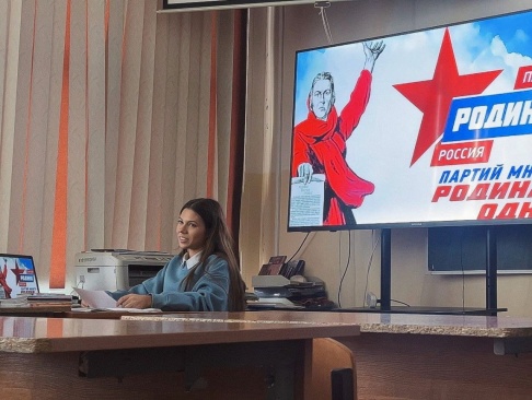 Представитель молодежного крыла Всероссийской политической партии "РОДИНА" Виктория Воедилова провела беседу с учениками 11-го класса, на которой рассказала ребятам о деятельности партии "РОДИНА" и объяснила, за что отвечает молодежное крыло партии.