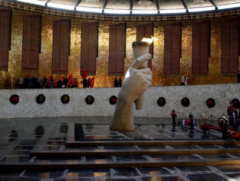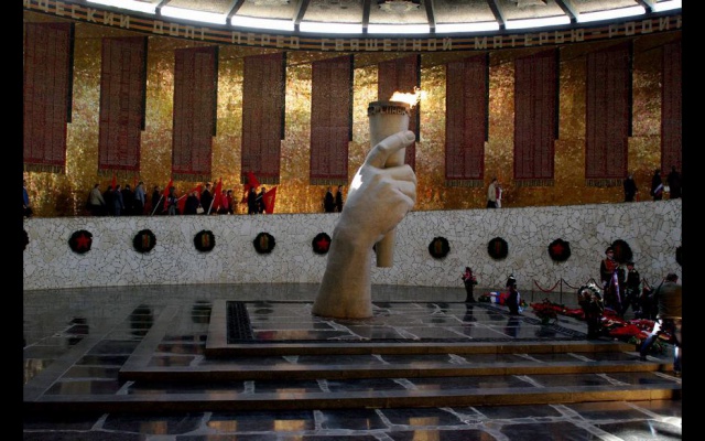 Присутствующие почтили минутой молчания память героев Великой Отечественной войны, затем направились к подножию скульптуры "Родина-Мать зовет!". Тысячи зажженных свечей, которые они держали в руках, символизировали память, надежду и преемственность поколений.